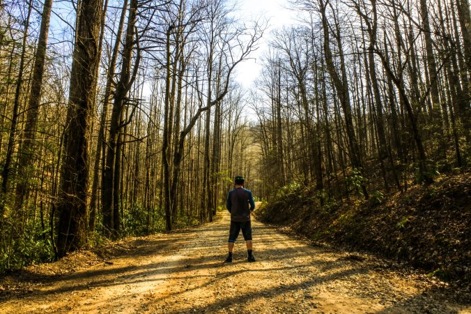 Luke spent the week in Piss-gah National Forest, North Carolina, last week. Here he is making sure Yellow Gap Road is extra yellow.