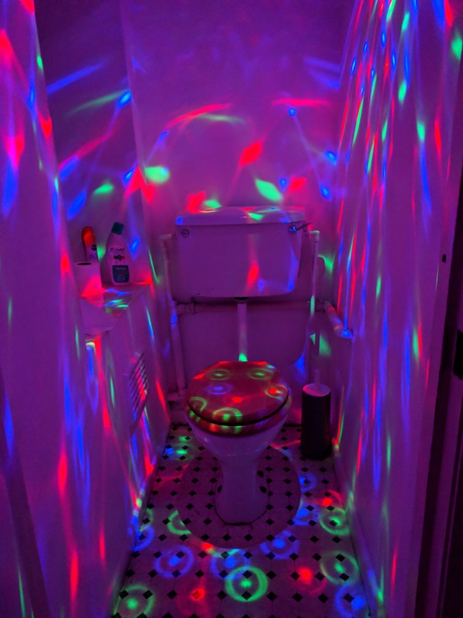 The party bulb makes toilet time go OFF. Here’s Luke in a barn in the Lake District.