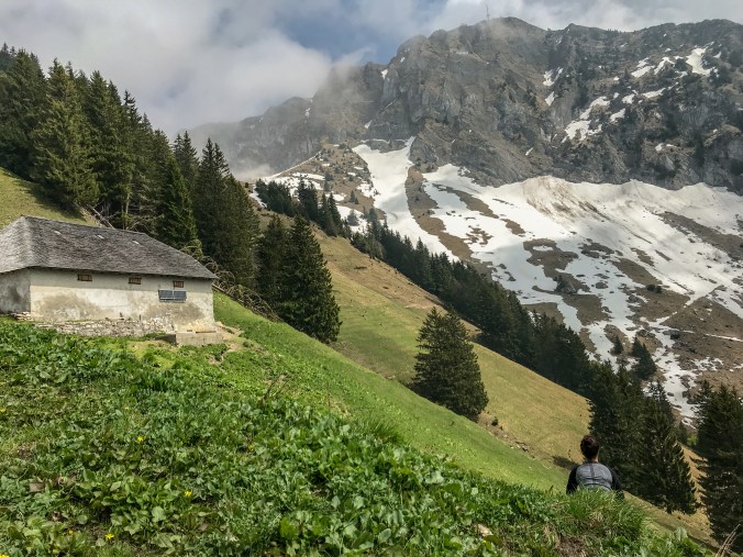 Rachel is a gorilla in the piss-t, looking at Roche de Naye, Canton Vaud.