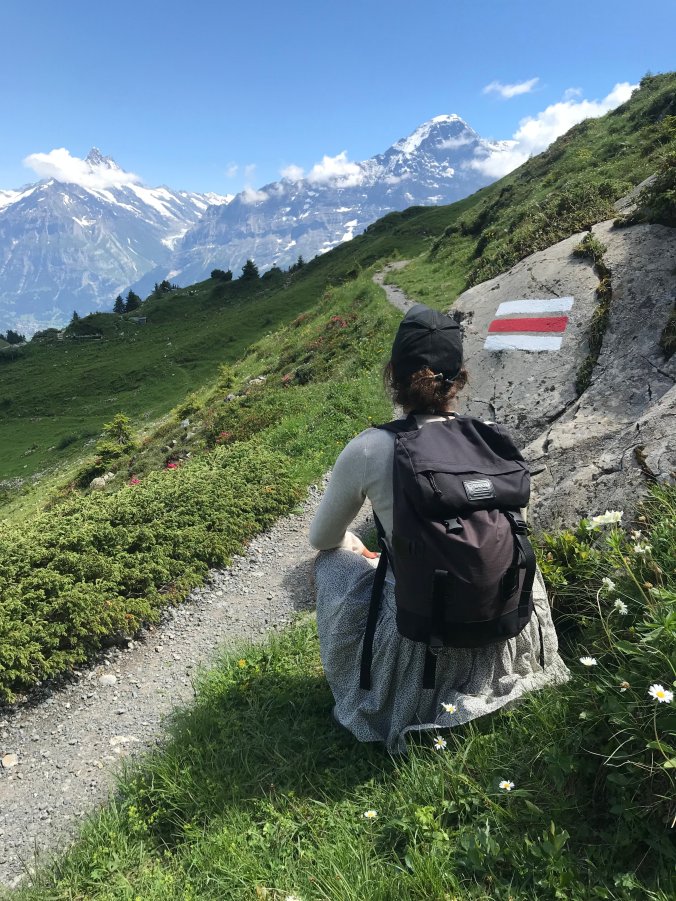 Here’s Rachel giving pee fans an eyeful by the Eiger.